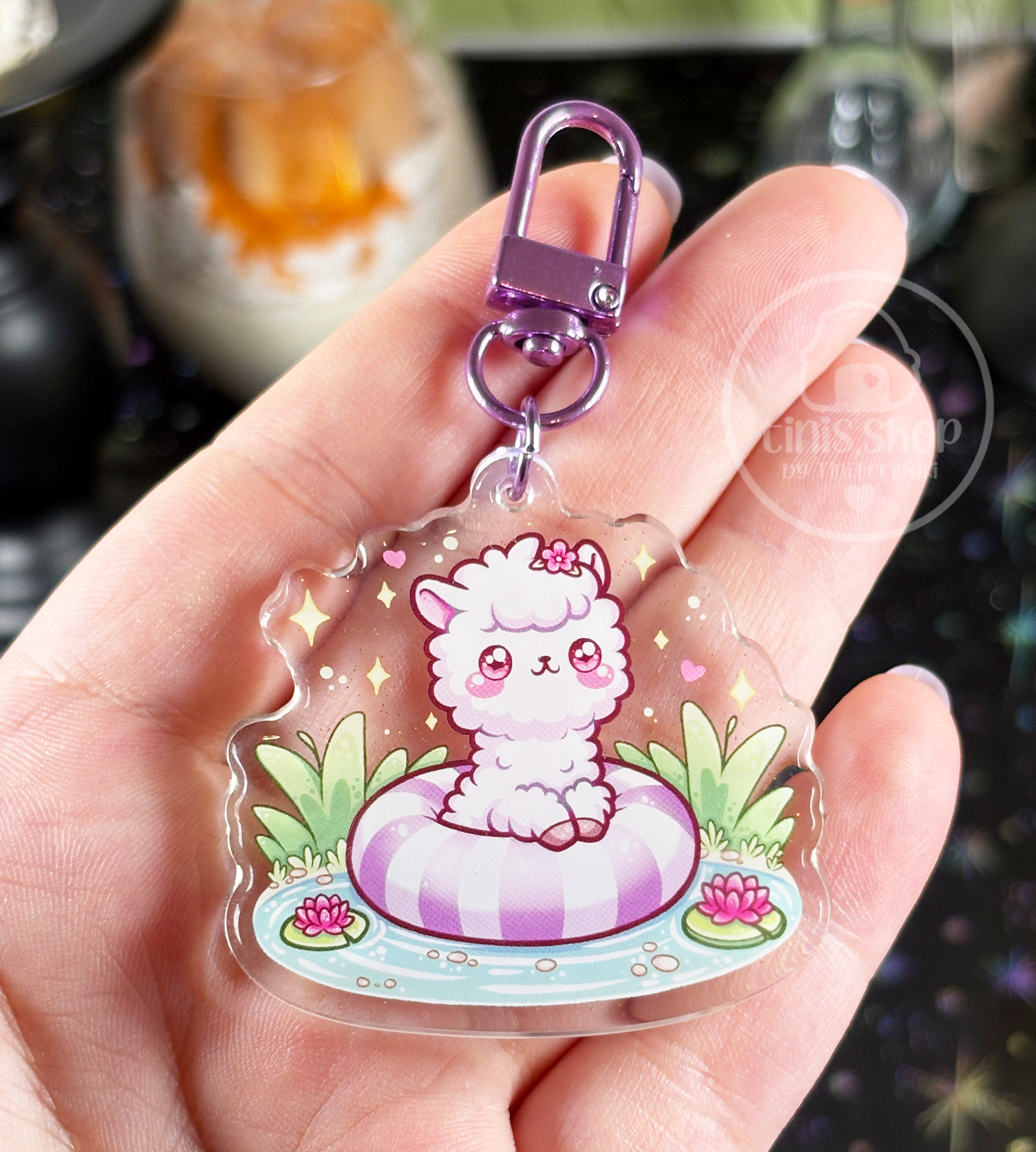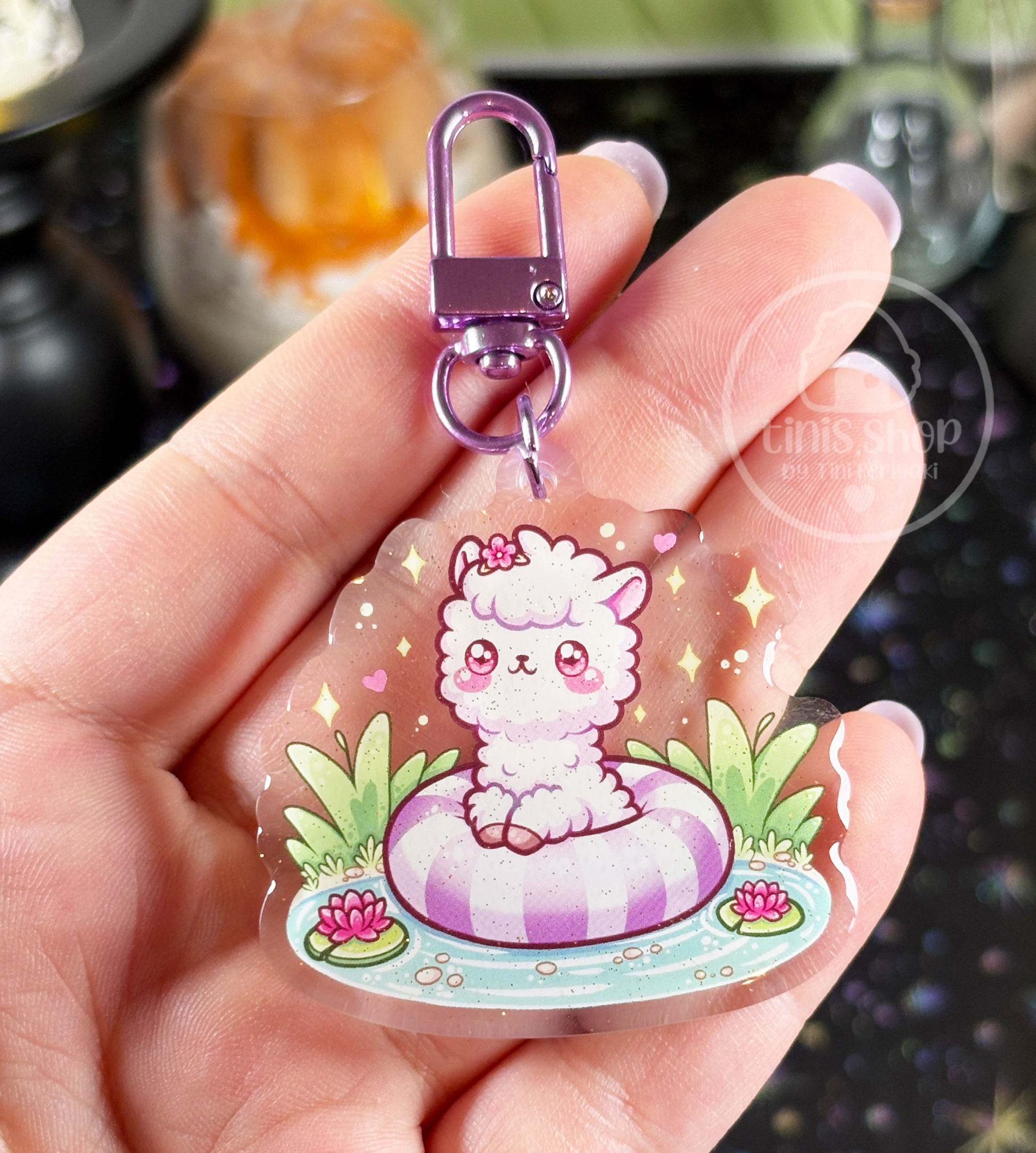 ✦ bedruckter transparenter Schlüsselanhänger mit dem Motiv: "Alpaka im Schwimmring"