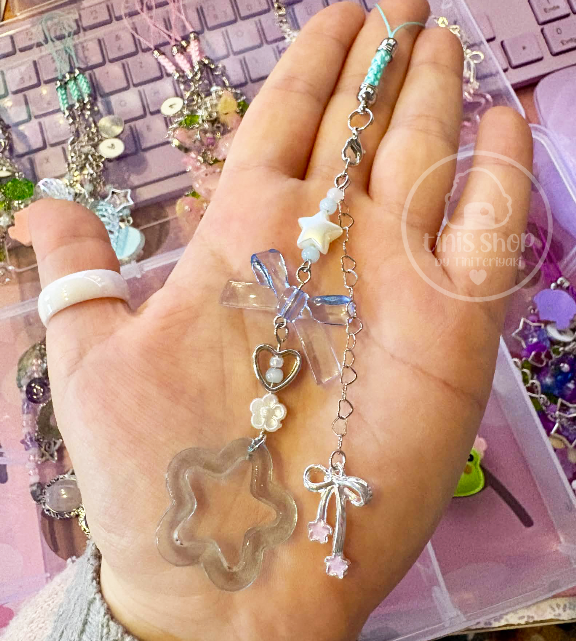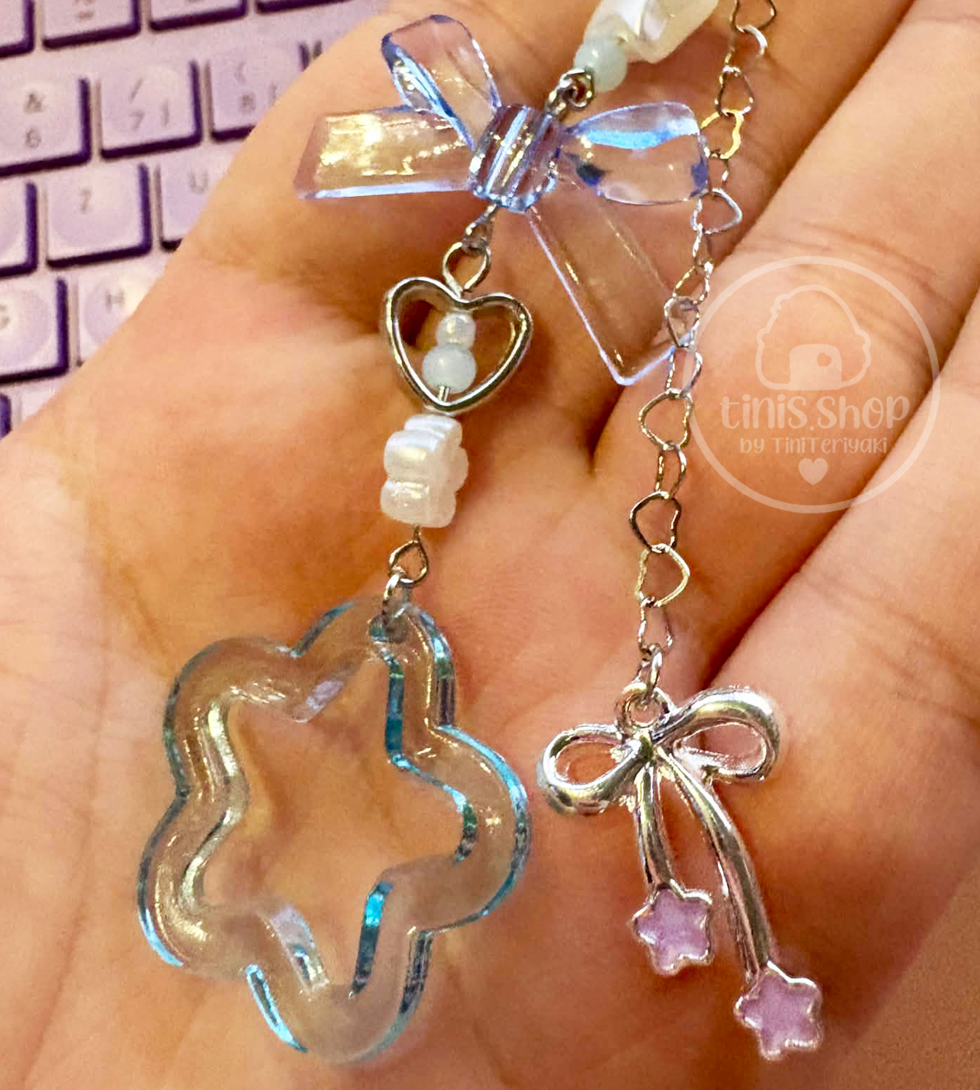 ✦ eine blau-transparente Schleife im mittleren Bereich des Anhängers rundet alles ab