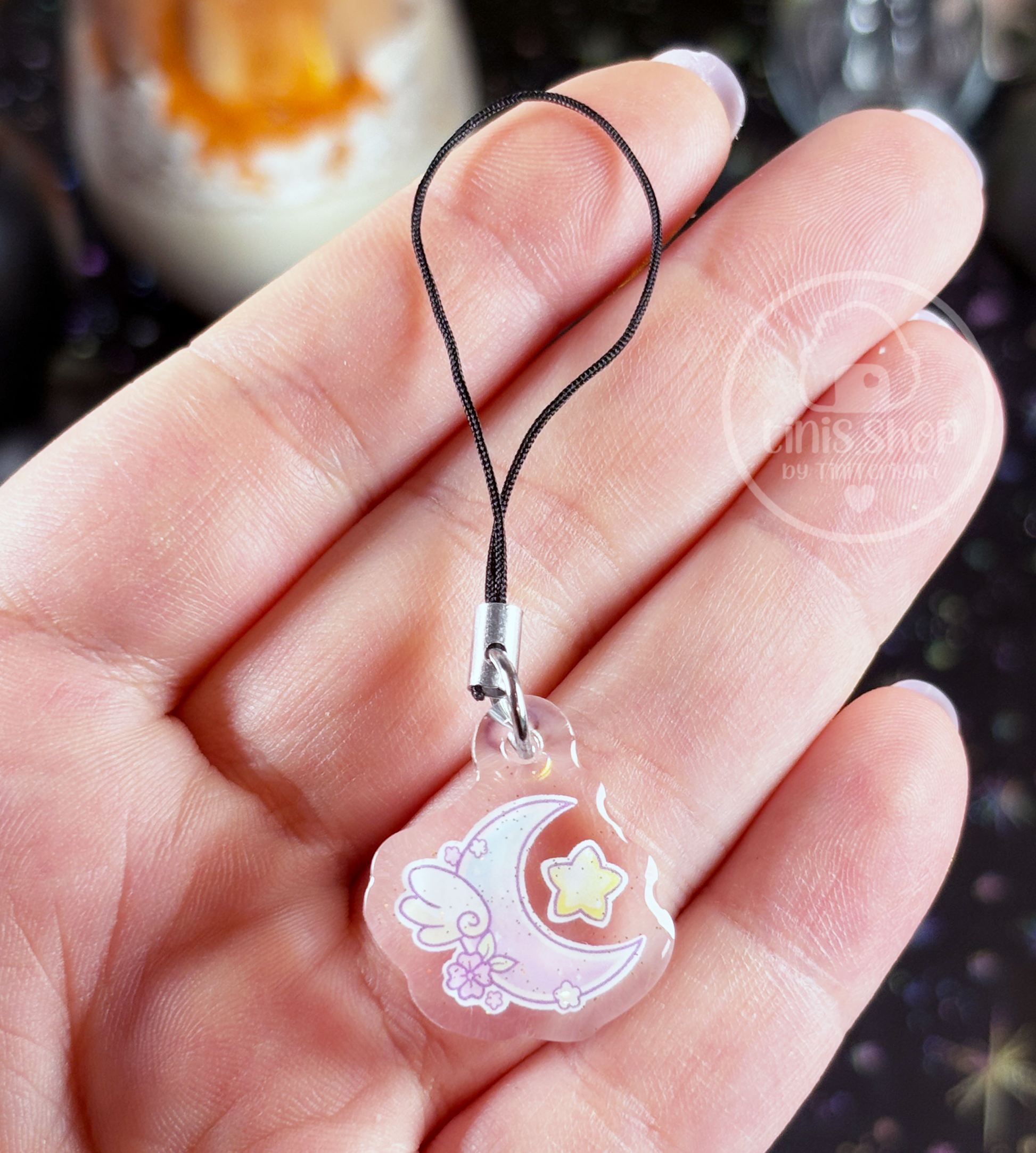 ✦ bedruckter transparenter Phone Charm mit dem Motiv: "Flügelmond"