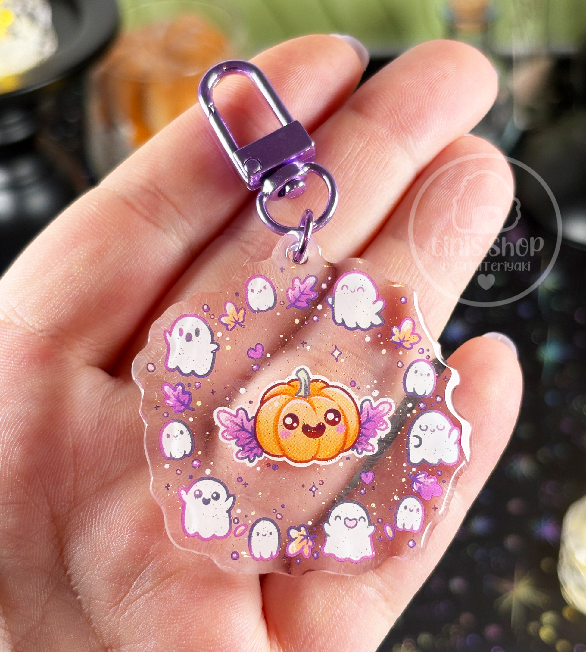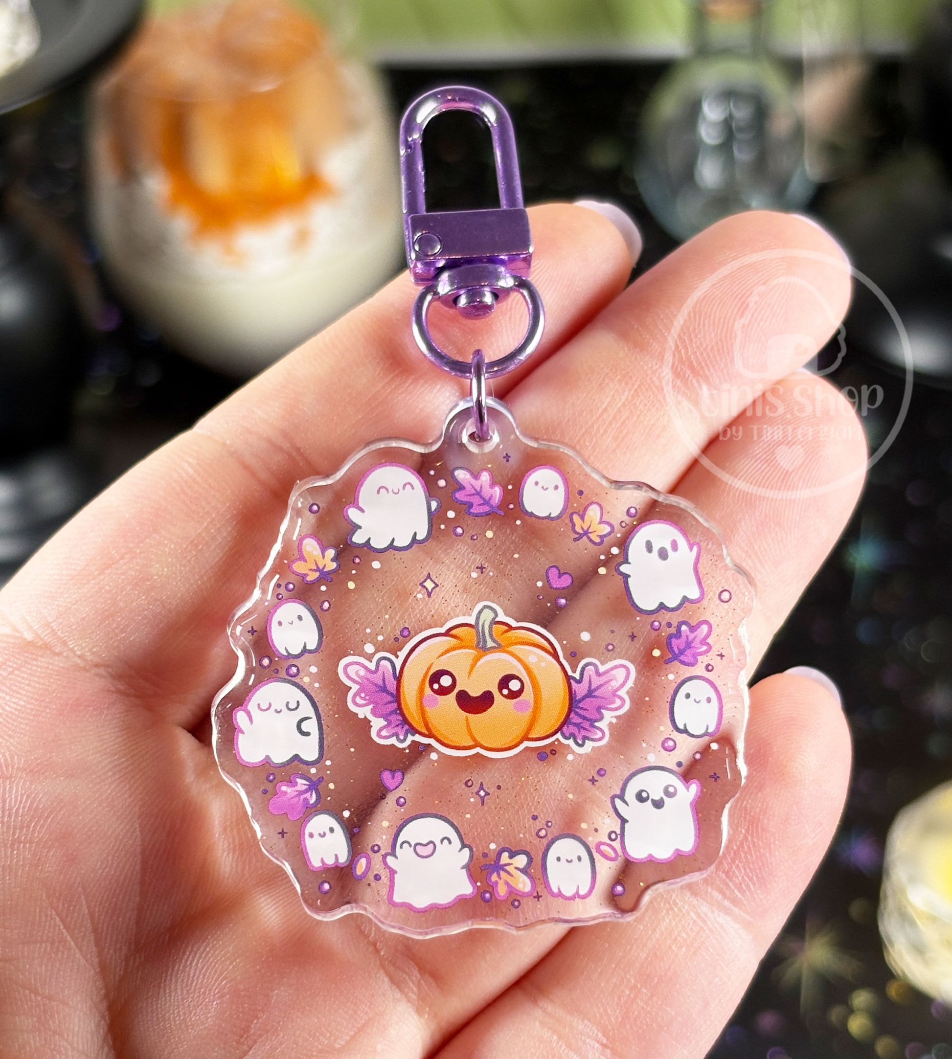 ✦ bedruckter transparenter Schlüsselanhänger mit dem Motiv: "Geister mit Kürbis"