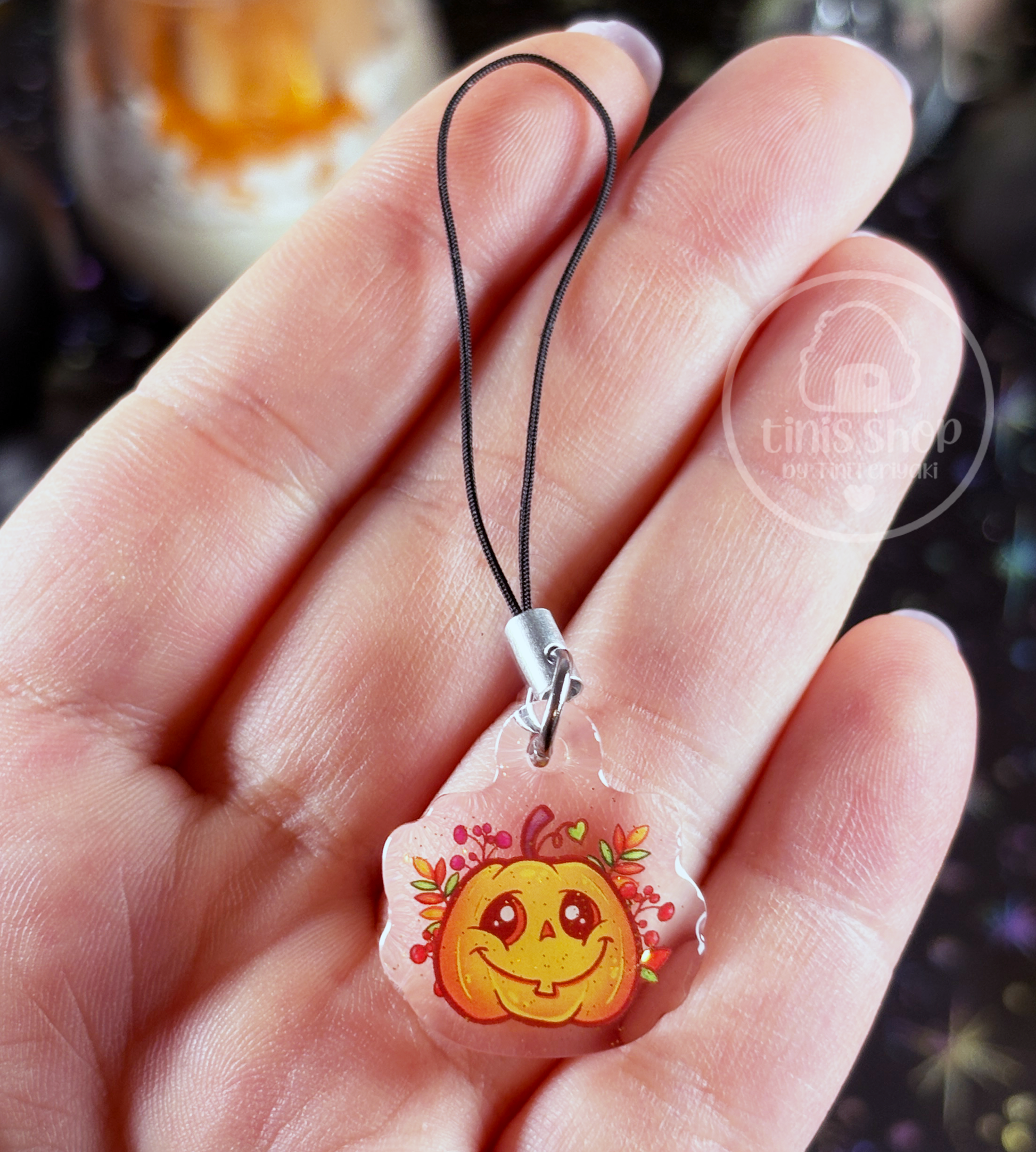 ✦ bedruckter transparenter Phone Charm mit dem Motiv: "Kürbis"